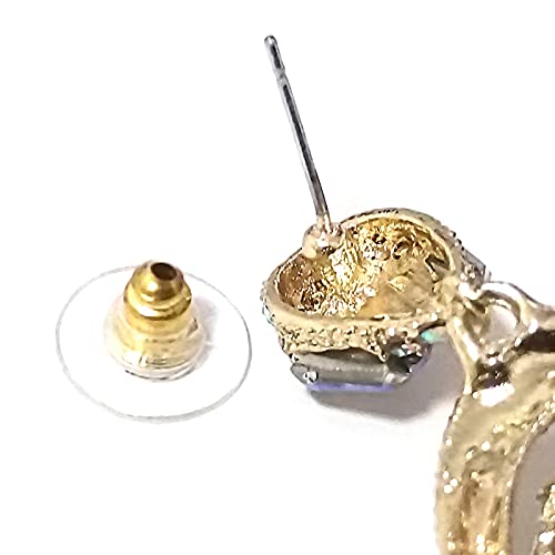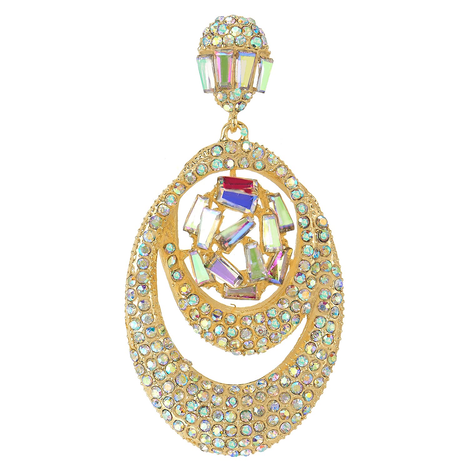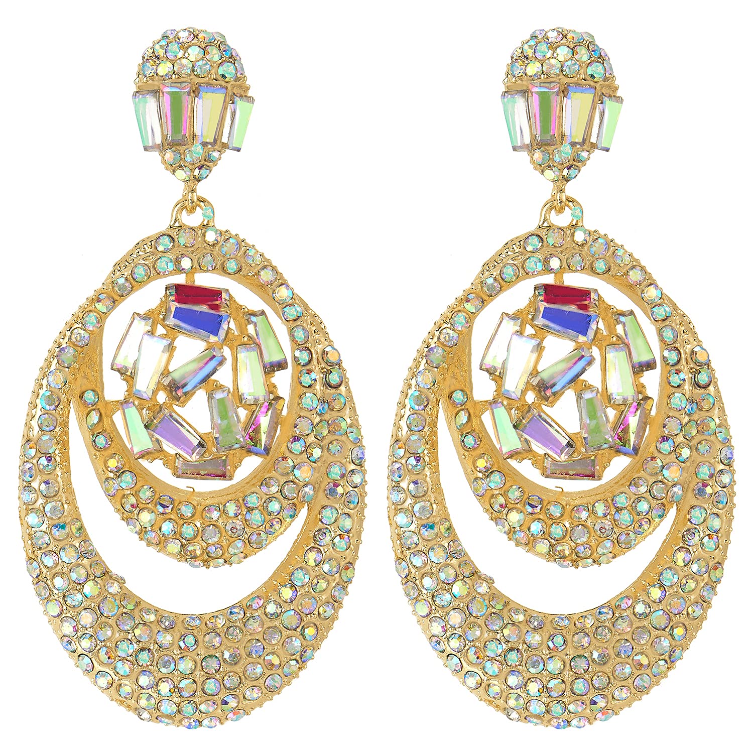Dress Rainbow Rhinestone Trapezium Crystal Interlocking Oval Large Dangle Statement Gold Earrings